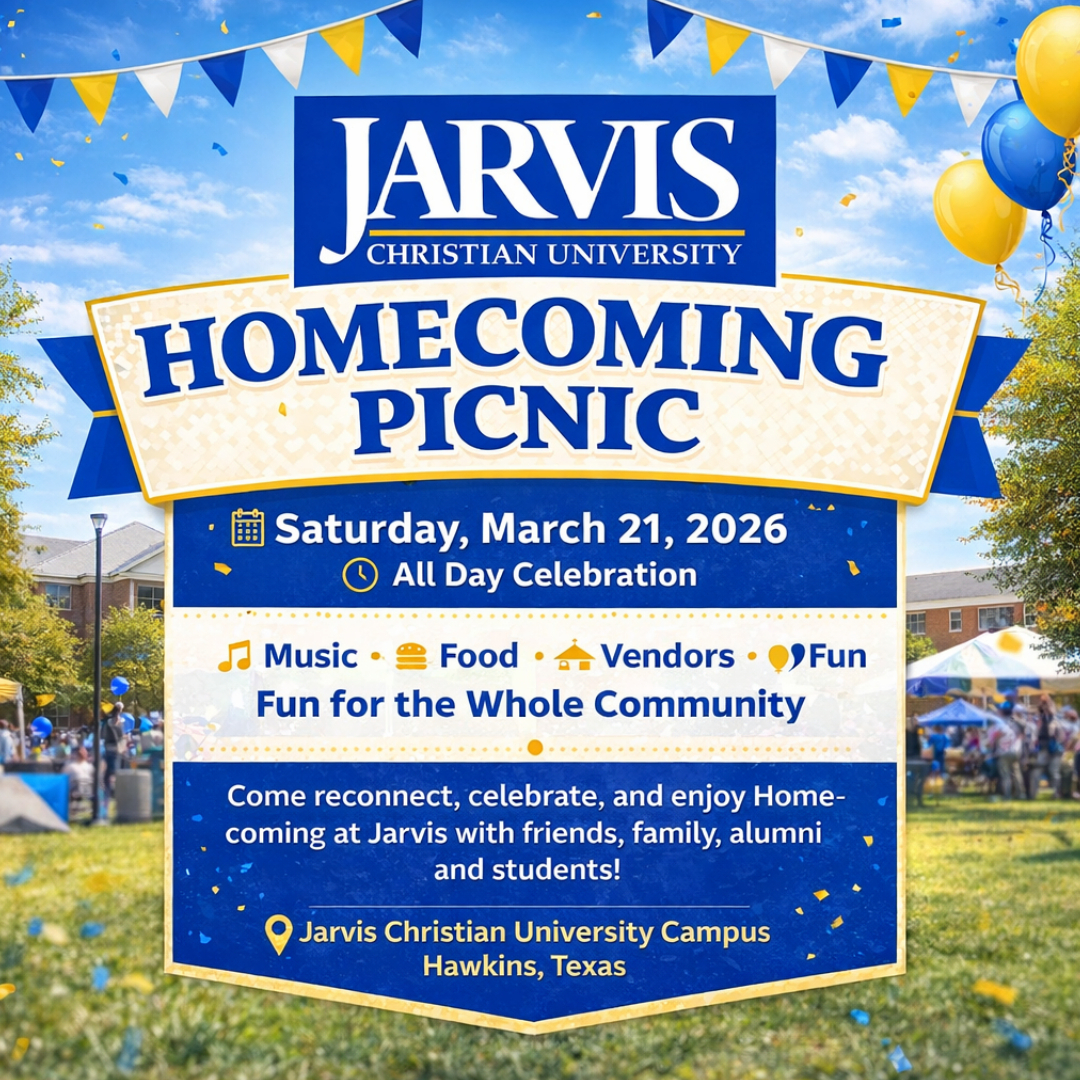 Celebrate 114 years of excellence at Jarvis Christian University’s Founders/Homecoming Weekend, taking place March 16-22, 2026! This exciting annual tradition brings together alumni, students, faculty, staff, and friends of JCU to honor our rich legacy, reconnect with the Jarvis family, and celebrate the university’s continued growth. The weekend will feature a series of special events, including the J.N. Ervin Founders’ Convocation, the prestigious Pioneer Hall of Fame and Preeminence Awards Gala, and a Greek Step Show. Enjoy fellowship, class reunions, the Homecoming Parade, athletic events, and worship as we reflect on our history and look ahead to an even brighter future. Don’t miss this incredible opportunity to celebrate, reconnect, and show your Jarvis Pride!