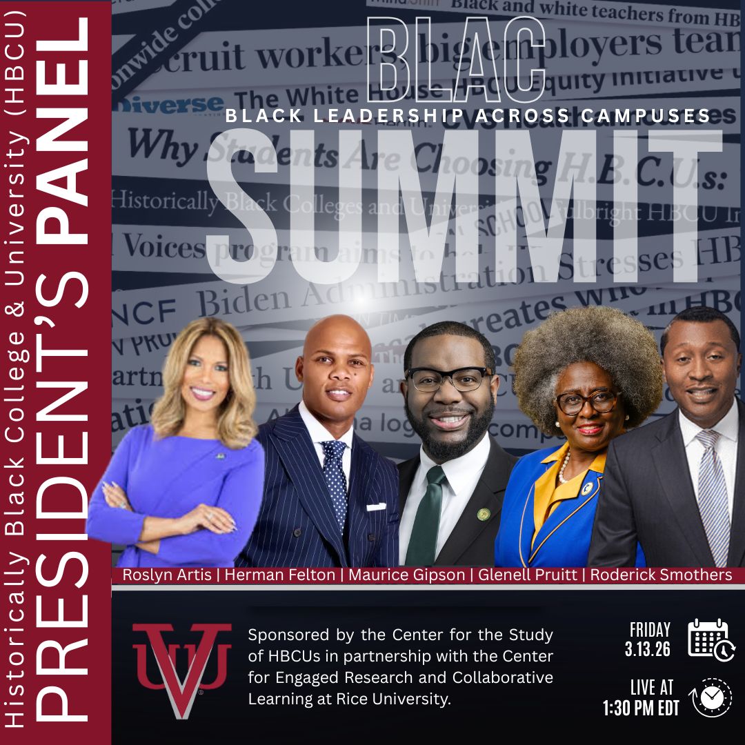 The virtual panel, hosted by the Center for the Study of HBCUs at Virginia Union University, will take place Friday, March 13, from 1:30 to 2:15 p.m. EDT via Zoom. The session will bring together four prominent HBCU presidents whose institutions are shaping the future of higher education and expanding opportunities for students across the country.